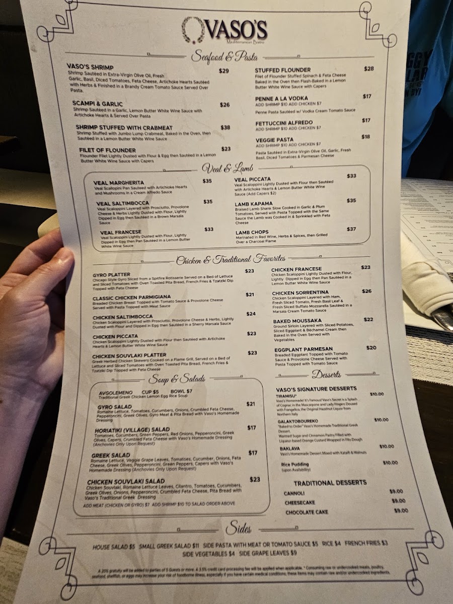 For reservations or more information, please contact Vaso's at +1 703-566-2720. Your culinary adventure awaits!