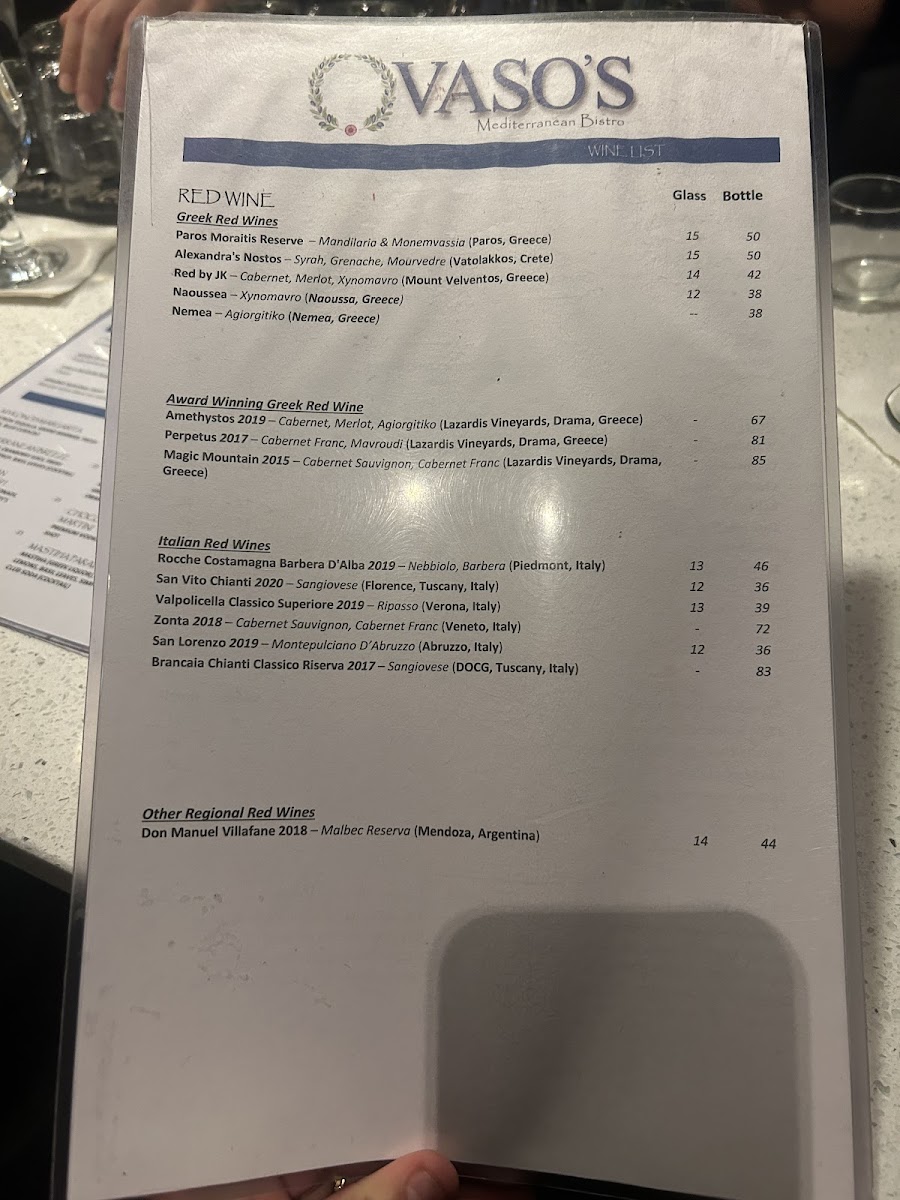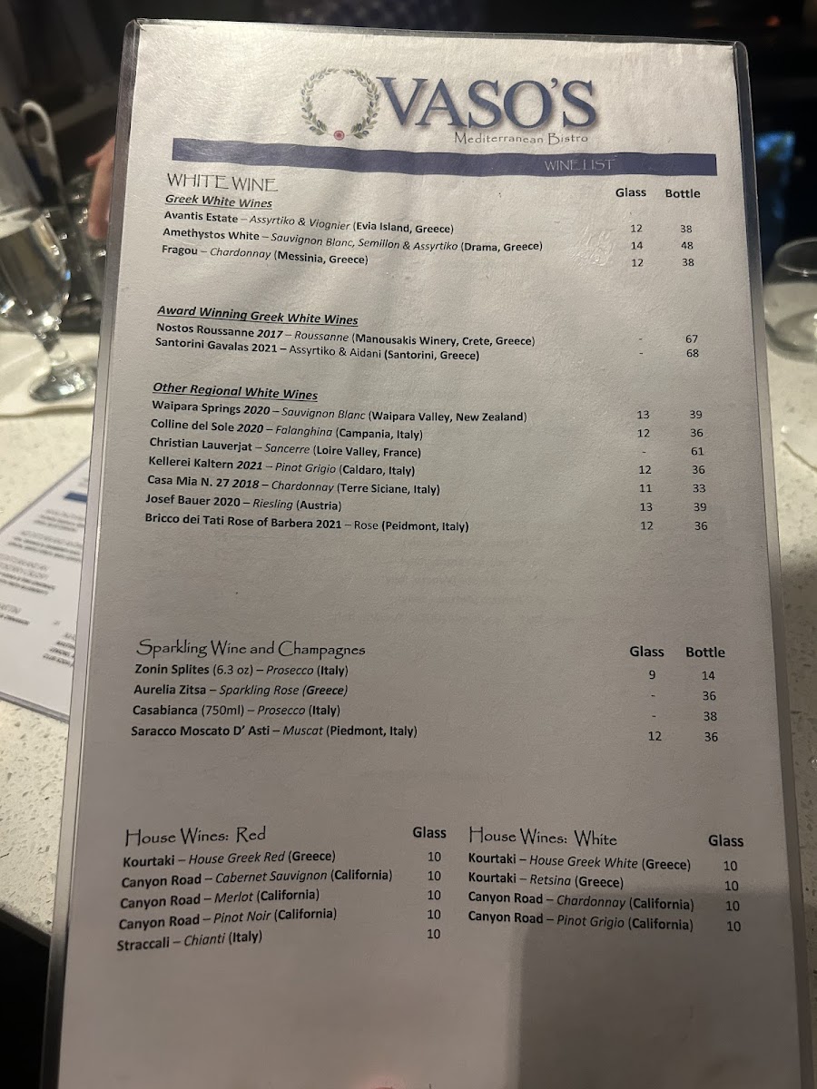 Vaso's boasts a selection of wines that would complement your meal beautifully, from the refreshing NEMEA Fruity White to the effervescent AURELIA ZITSA Sparkling Rosé. Treat yourself to a glass (or a bottle!) and elevate your dining experience. Each sip is a celebration of quality and tradition as you unwind in the bistro’s inviting atmosphere.